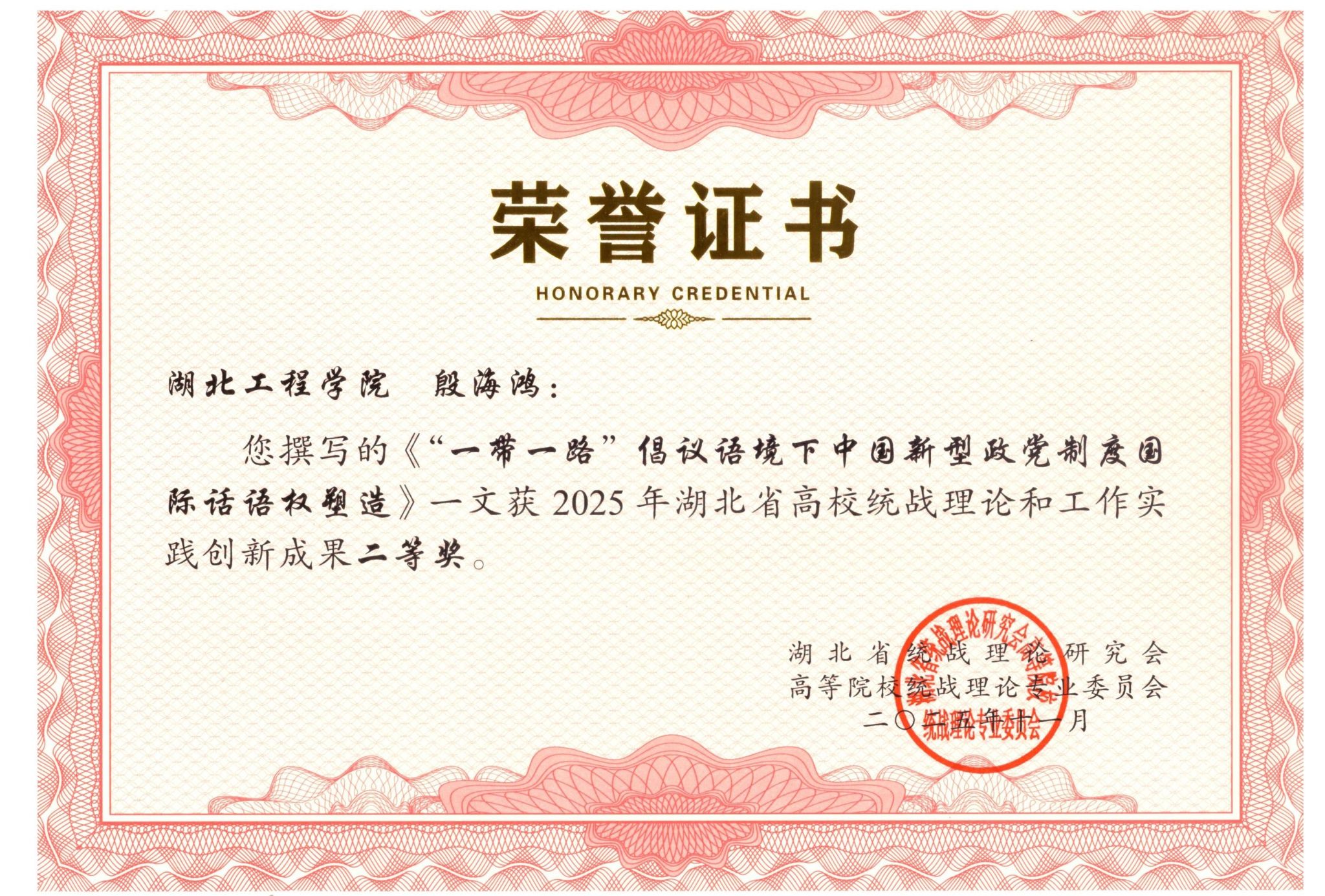 本次年会共收到各类统战理论和工作实践论文成果291篇,经省统战理论研究会、省委统战部、省委高校工委组织相关专家评审,评选出一等奖10篇,二等奖25篇,三等奖40篇,优秀奖37篇。我校统战理论研究成果获二等奖1项、三等奖1项、优秀奖1项。殷海鸿老师撰写的《“一带一路”倡议语境下中国新型政党制度国际话语权塑造》荣获优秀论文二等奖;孙博老师撰写的《党外知识分子助力新质生产力发展研究》荣获优秀论文三等奖;张茜老师撰写的《高校党外知识分子政治引领机制的创新路径研究》荣获优秀奖。