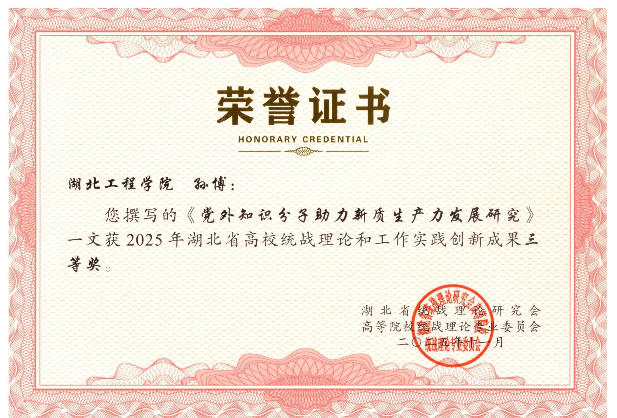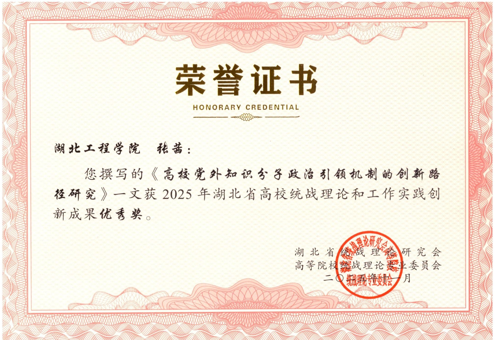 近年来,学校党委高度重视统战理论和工作实践创新工作,不断总结凝练我校统战工作特色亮点,充分彰显我校统战工作品牌的认知度和影响力,目前累计申报统战理论工作和实践创新课题40余项,获奖10余项。下一步,学校党委统战部将在学校党委的坚强领导下,深入学习贯彻党的二十届四中全会精神,不断完善党外知识分子建言献策和作用发挥的体制机制,创新性开展统战理论研究与实践创新工作,为学校高质量发展和服务湖北支点建设献策出力。