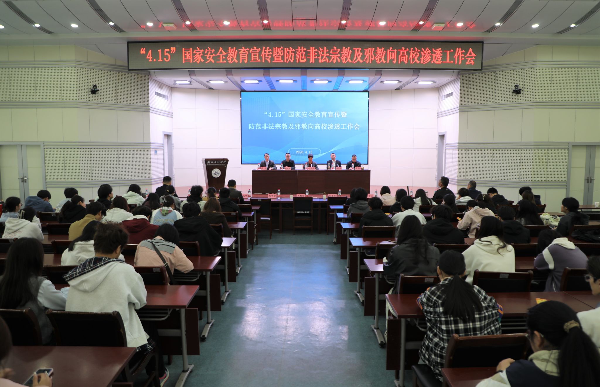 为深入贯彻总体国家安全观,迎接第十一个全民国家安全教育日,切实增强我校师生防范抵御非法宗教及邪教向校园渗透的能力,2026年4月15日上午,湖北工程学院联合市委统战部、市委政法委、市公安局在图书馆人文广场组织开展了“4·15”国家安全教育宣传暨防范非法宗教及邪教向高校渗透主题活动。学校党委常委、副校长、统战部长熊曾刚,相关职能部门负责人、各院系辅导员及学生代表参加。